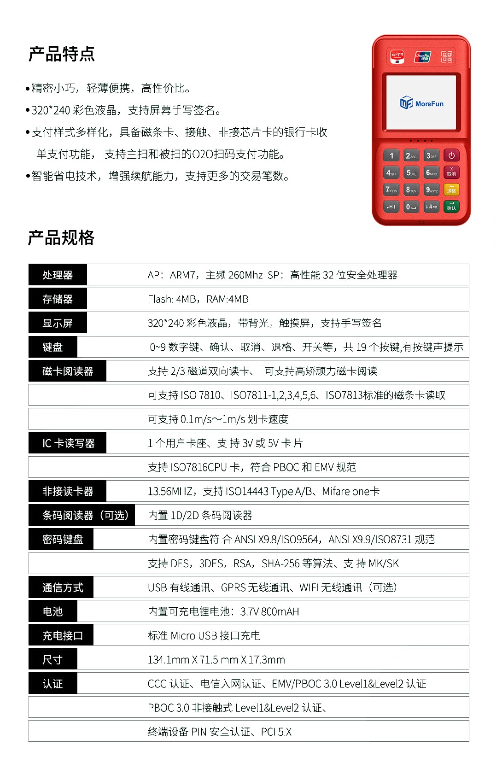 首页>>怀柔产品中心>>怀柔手持无线POS 怀柔联动优势-优POS Pro 高配版 * 性能优越:32位高性能ARM11安全CPU;整机通过业内更先进的PCI PED4.X 安全认证及国内受理终端PIN输入设备安全评估检测认证,多项措施保障金融交易的安全;* 时尚外观:外形小巧携带方便,高抗跌落性能、宽工作温度、防水防尘设计、外壳坚固耐刮、户外携带式作业更加耐久可靠。* 通讯备份:支持2G-3G扩展;* 超长续航:3.7V-800毫安稳定续航能力,智能电池管理保证持续工作18小时,待机72小时。 标准配置 返 回